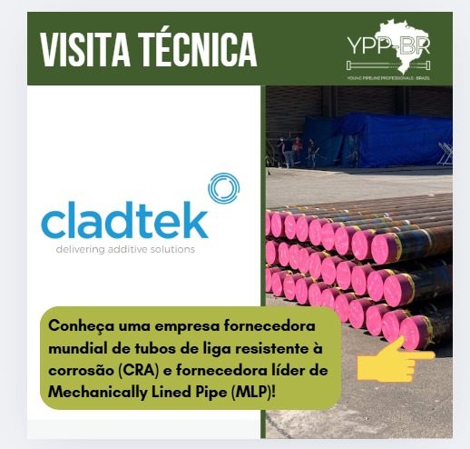 No dia 03 de dezembro de 2025, o Young Pipeline Professionals Brazil – YPP Brazil, com o apoio do CTDUT – Centro de Tecnologia em Dutos e Terminais / Pipelines and Terminals Technology Center, realizará uma visita técnica à Cladtek.